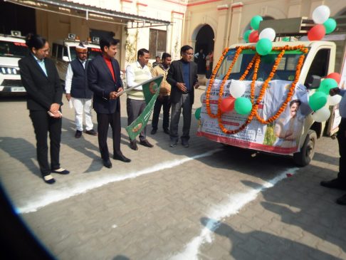 हरदोई, 19 दिसम्बर 2023ः- भारत एवं प्रदेश सरकार द्वारा संचालित प्रधानमंत्री फसल बीमा योजना के अन्तर्गत छोटा प्रीमियर बड़ी सुरक्षा के प्रति जनपद के कृषकों जागरूक करने हेतु आज जिलाधिकारी मंगला प्रसाद सिंह ने कलेक्टेªट परिसर से एक जागरूकता वाहन को हरी झण्डी दिखाकर रवाना किया।