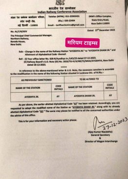 ,अधिसूचना जारी,अब अयोध्या धाम जंक्शन के नाम से जाना जायेगा अयोध्या रेलवे स्टेशन !!